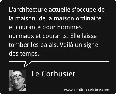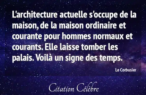 L'architecture actuelle s'occupe de la maison, de la maison ordinaire et courante pour hommes normaux et courants. Elle laisse tomber les palais. Voilà un signe des temps.