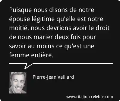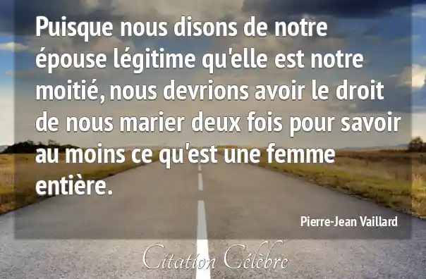 Puisque nous disons de notre épouse légitime qu'elle est notre moitié, nous devrions avoir le droit de nous marier deux fois pour savoir au moins ce qu'est une femme entière.