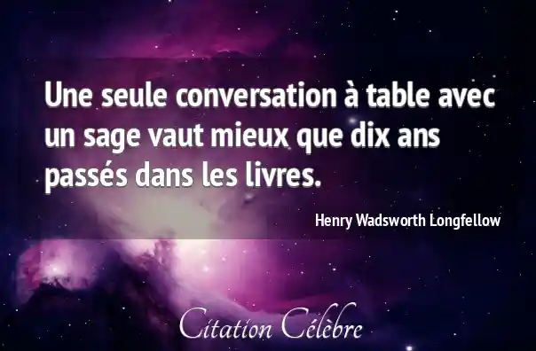 Une seule conversation à table avec un sage vaut mieux que dix ans passés dans les livres.