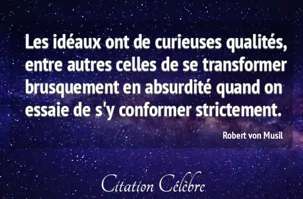 Les idéaux ont de curieuses qualités, entre autres celles de se transformer brusquement en absurdité quand on essaie de s'y conformer strictement.