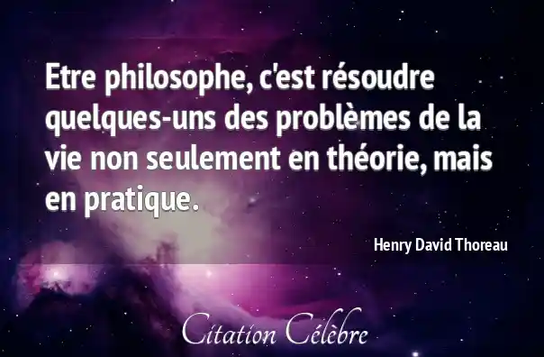 Etre philosophe, c'est résoudre quelques-uns des problèmes de la vie non seulement en théorie, mais en pratique.