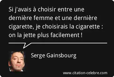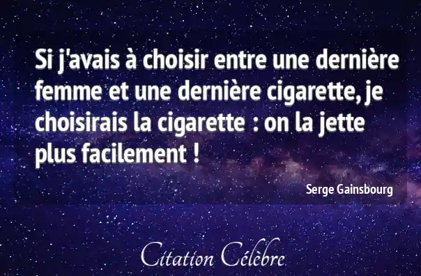 Si j'avais à choisir entre une dernière femme et une dernière cigarette, je choisirais la cigarette : on la jette plus facilement !