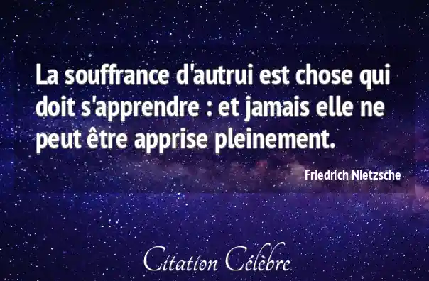 La souffrance d'autrui est chose qui doit s'apprendre : et jamais elle ne peut être apprise pleinement.