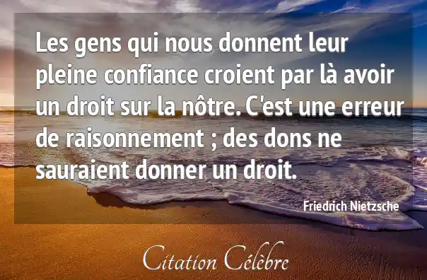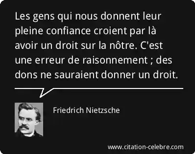 Les gens qui nous donnent leur pleine confiance croient par là avoir un droit sur la nôtre. C'est une erreur de raisonnement ; des dons ne sauraient donner un droit.