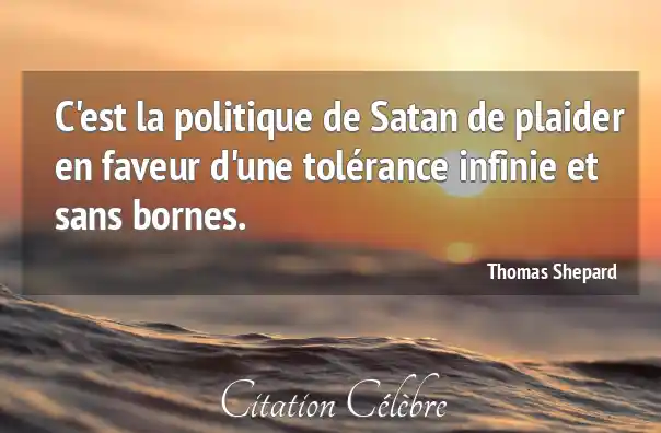 C'est la politique de Satan de plaider en faveur d'une tolérance infinie et sans bornes.