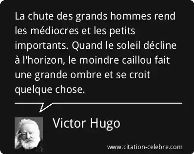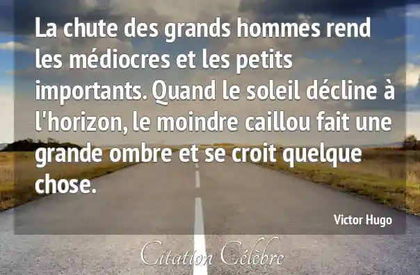 La chute des grands hommes rend les médiocres et les petits importants. Quand le soleil décline à l'horizon, le moindre caillou fait une grande ombre et se croit quelque chose.