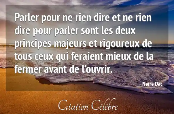 Parler pour ne rien dire et ne rien dire pour parler sont les deux principes majeurs et rigoureux de tous ceux qui feraient mieux de la fermer avant de l'ouvrir.