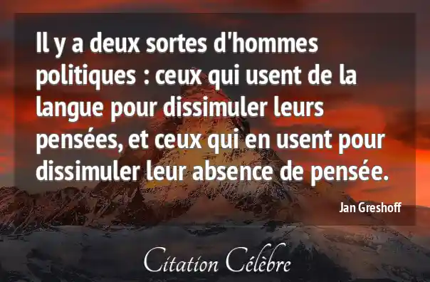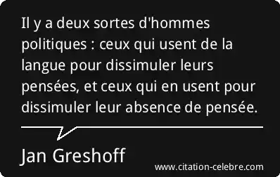 Il y a deux sortes d'hommes politiques : ceux qui usent de la langue pour dissimuler leurs pensées, et ceux qui en usent pour dissimuler leur absence de pensée.