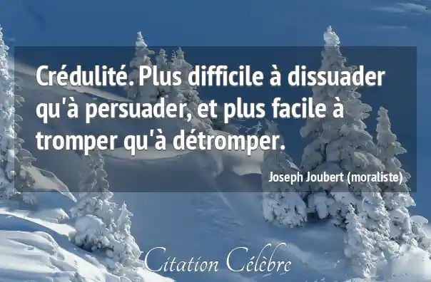 Crédulité. Plus difficile à dissuader qu'à persuader, et plus facile à tromper qu'à détromper.