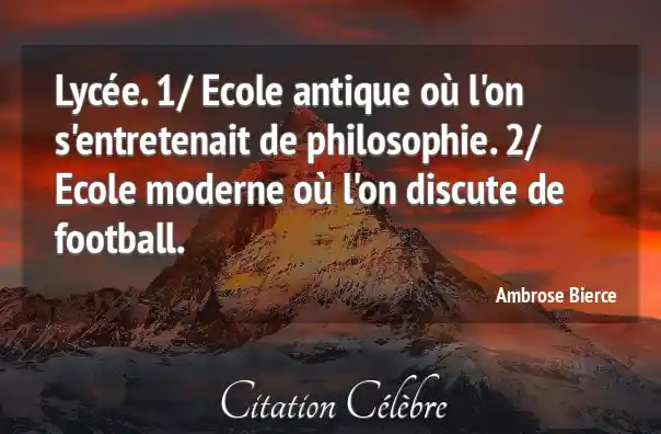 Lycée. 1/ Ecole antique où l'on s'entretenait de philosophie. 2/ Ecole moderne où l'on discute de football.