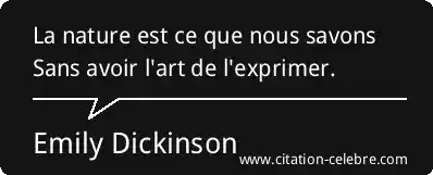 Citation Emily Dickinson nature : La nature est ce que nous savons Sans avoir l'art...