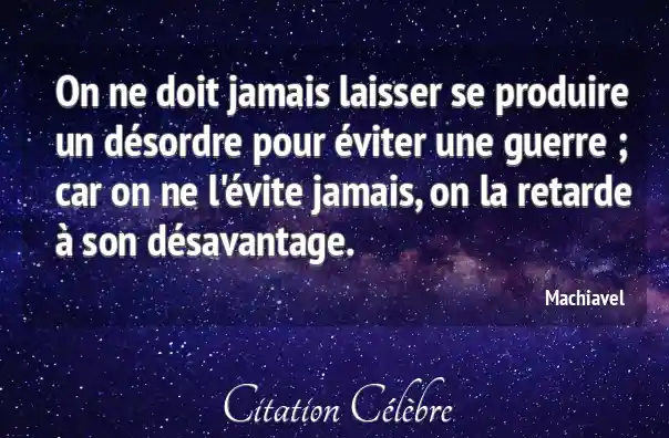 On ne doit jamais laisser se produire un désordre pour éviter une guerre ; car on ne l'évite jamais, on la retarde à son désavantage.