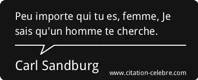 Peu importe qui tu es, femme, Je sais qu'un homme te cherche.