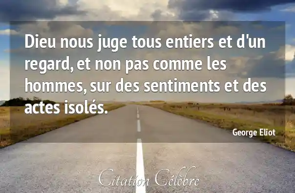 Citation George Eliot dieu : Dieu nous juge tous entiers et d'un regard, et non...