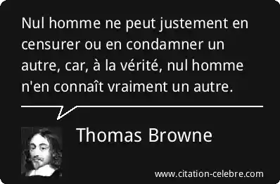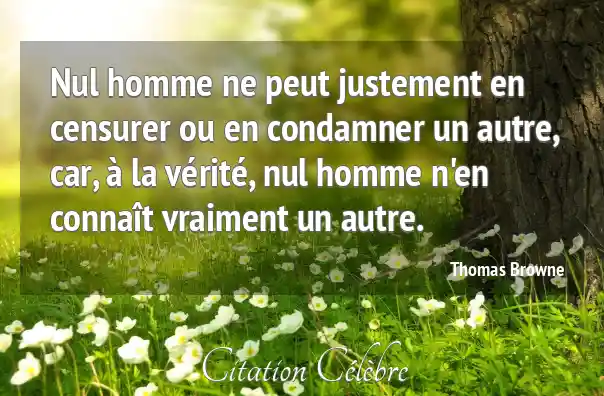 Nul homme ne peut justement en censurer ou en condamner un autre, car, à la vérité, nul homme n'en connaît vraiment un autre.