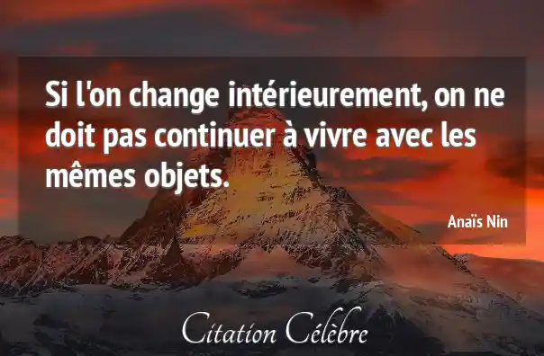 Si l'on change intérieurement, on ne doit pas continuer à vivre avec les mêmes objets.