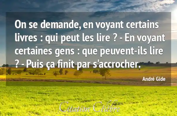 On se demande, en voyant certains livres : qui peut les lire ? - En voyant certaines gens : que peuvent-ils lire ? - Puis ça finit par s'accrocher.