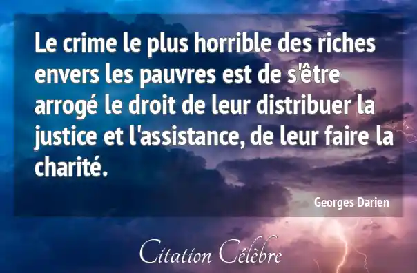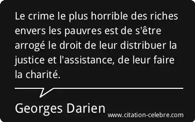 Le crime le plus horrible des riches envers les pauvres est de s'être arrogé le droit de leur distribuer la justice et l'assistance, de leur faire la charité.