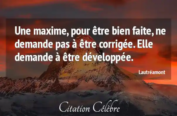 Une maxime, pour être bien faite, ne demande pas à être corrigée. Elle demande à être développée.