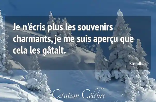 Je n'écris plus les souvenirs charmants, je me suis aperçu que cela les gâtait.