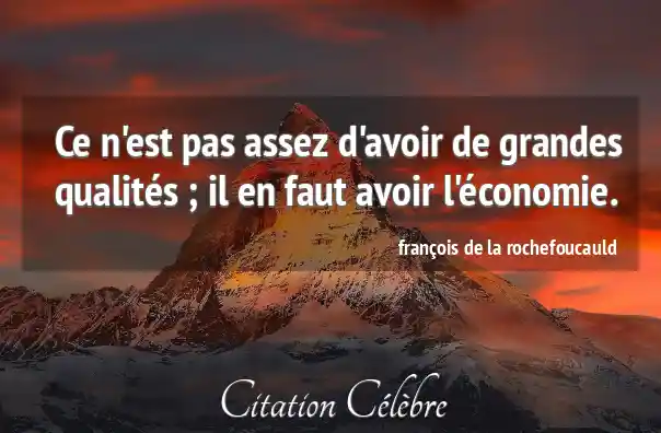 Ce n'est pas assez d'avoir de grandes qualités ; il en faut avoir l'économie.