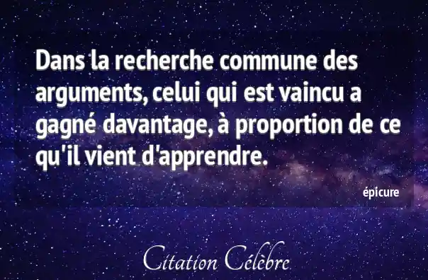 Dans la recherche commune des arguments, celui qui est vaincu a gagné davantage, à proportion de ce qu'il vient d'apprendre.