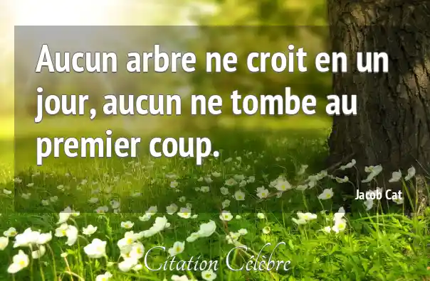 Aucun arbre ne croit en un jour, aucun ne tombe au premier coup.