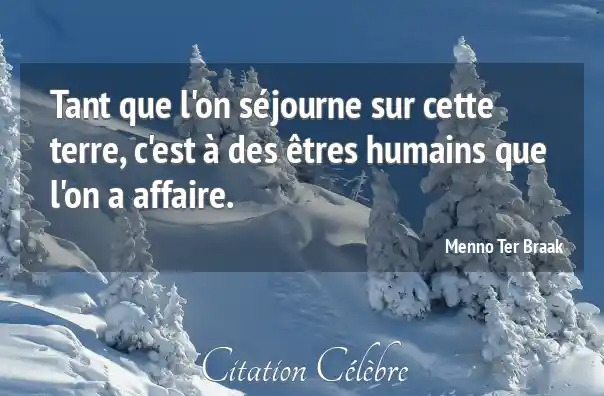 Tant que l'on séjourne sur cette terre, c'est à des êtres humains que l'on a affaire.