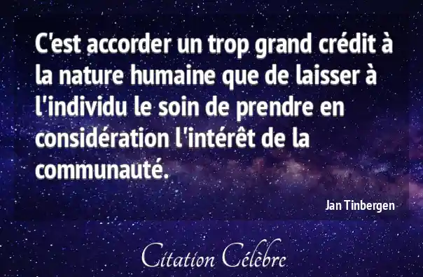 C'est accorder un trop grand crédit à la nature humaine que de laisser à l'individu le soin de prendre en considération l'intérêt de la communauté.
