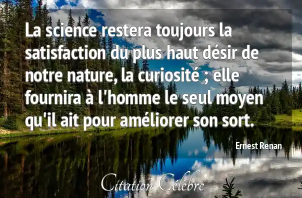 La science restera toujours la satisfaction du plus haut désir de notre nature, la curiosité ; elle fournira à l'homme le seul moyen qu'il ait pour améliorer son sort.