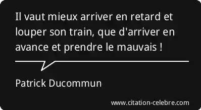 Citation Patrick Ducommun retard : Il vaut mieux arriver en retard et louper son train,...