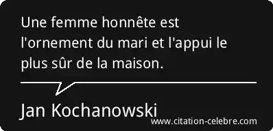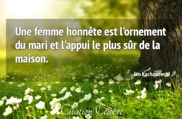 Une femme honnête est l'ornement du mari et l'appui le plus sûr de la maison.