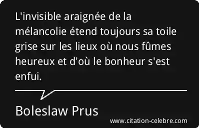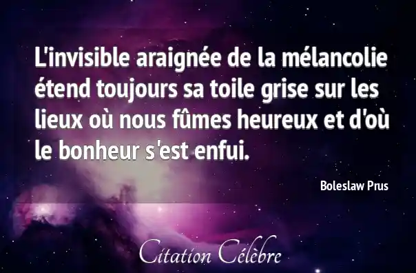 L'invisible araignée de la mélancolie étend toujours sa toile grise sur les lieux où nous fûmes heureux et d'où le bonheur s'est enfui.
