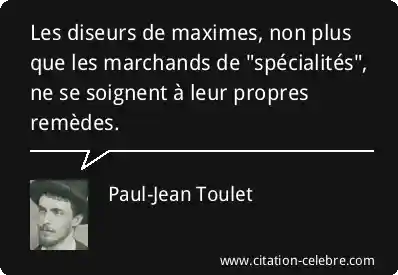 Les diseurs de maximes, non plus que les marchands de "spécialités", ne se soignent à leur propres remèdes.