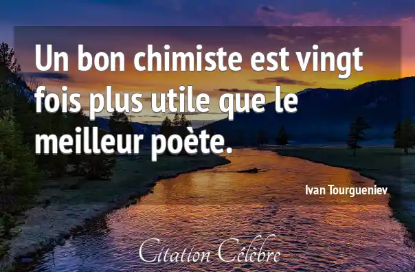 Un bon chimiste est vingt fois plus utile que le meilleur poète.