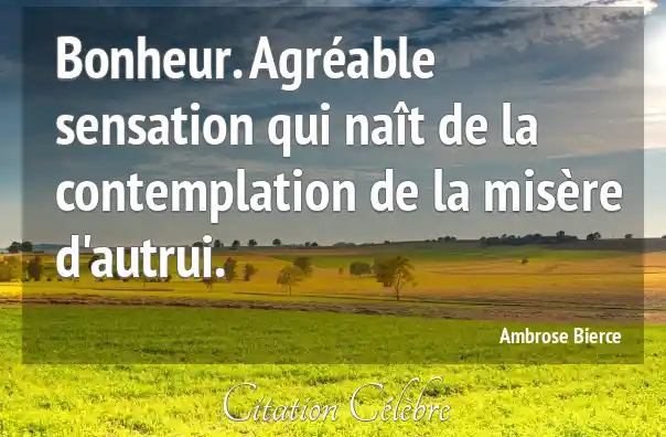 Bonheur. Agréable sensation qui naît de la contemplation de la misère d'autrui.