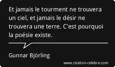 Et jamais le tourment ne trouvera un ciel, et jamais le désir ne trouvera une terre. C'est pourquoi la poésie existe.