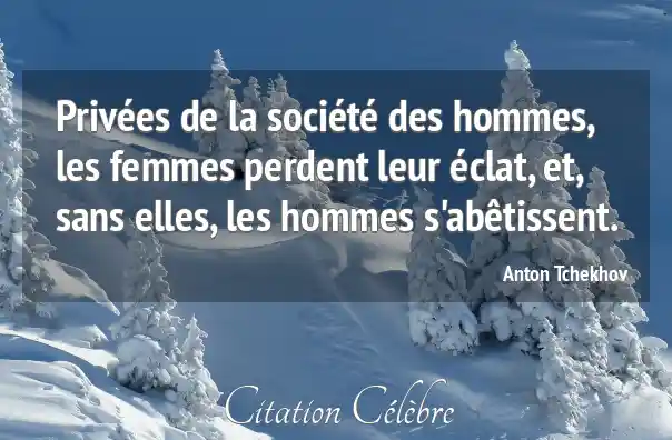 Privées de la société des hommes, les femmes perdent leur éclat, et, sans elles, les hommes s'abêtissent.