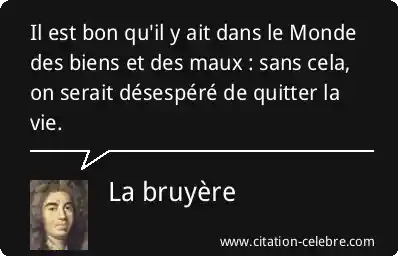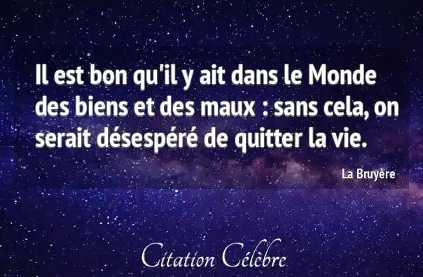 Il est bon qu'il y ait dans le Monde des biens et des maux : sans cela, on serait désespéré de quitter la vie.