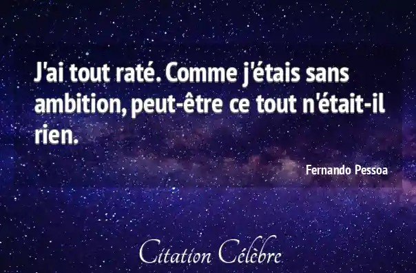 J'ai tout raté. Comme j'étais sans ambition, peut-être ce tout n'était-il rien.
