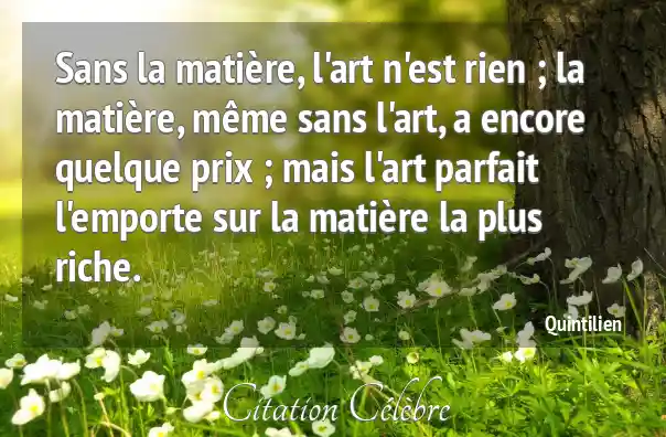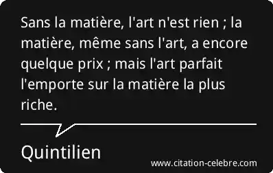 Sans la matière, l'art n'est rien ; la matière, même sans l'art, a encore quelque prix ; mais l'art parfait l'emporte sur la matière la plus riche.
