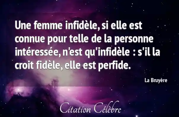 Une femme infidèle, si elle est connue pour telle de la personne intéressée, n'est qu'infidèle : s'il la croit fidèle, elle est perfide.