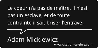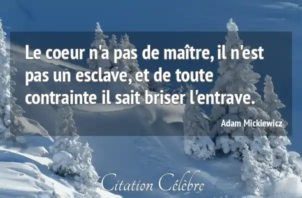 Le coeur n'a pas de maître, il n'est pas un esclave, et de toute contrainte il sait briser l'entrave.