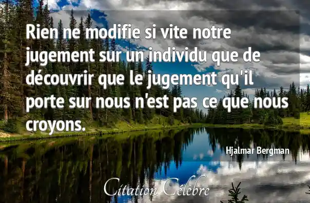 Rien ne modifie si vite notre jugement sur un individu que de découvrir que le jugement qu'il porte sur nous n'est pas ce que nous croyons.