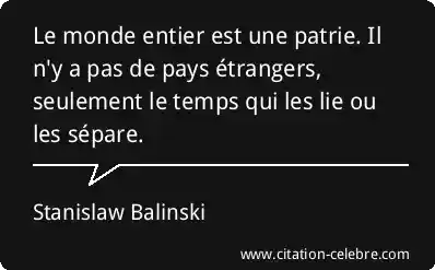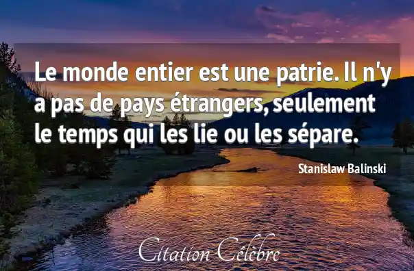 Le monde entier est une patrie. Il n'y a pas de pays étrangers, seulement le temps qui les lie ou les sépare.
