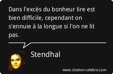 Dans l'excès du bonheur lire est bien difficile, cependant on s'ennuie à la longue si l'on ne lit pas.