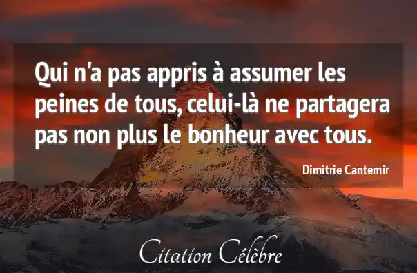 Qui n'a pas appris à assumer les peines de tous, celui-là ne partagera pas non plus le bonheur avec tous.