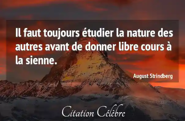 Il faut toujours étudier la nature des autres avant de donner libre cours à la sienne.