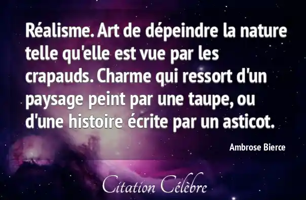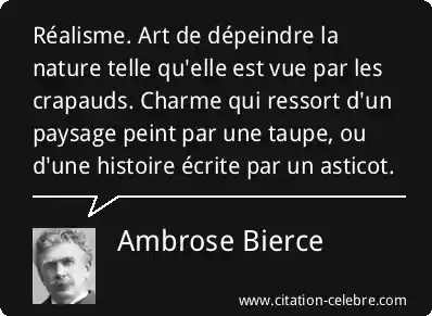 Réalisme. Art de dépeindre la nature telle qu'elle est vue par les crapauds. Charme qui ressort d'un paysage peint par une taupe, ou d'une histoire écrite par un asticot.