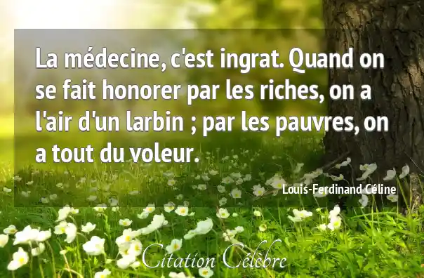 La médecine, c'est ingrat. Quand on se fait honorer par les riches, on a l'air d'un larbin ; par les pauvres, on a tout du voleur.